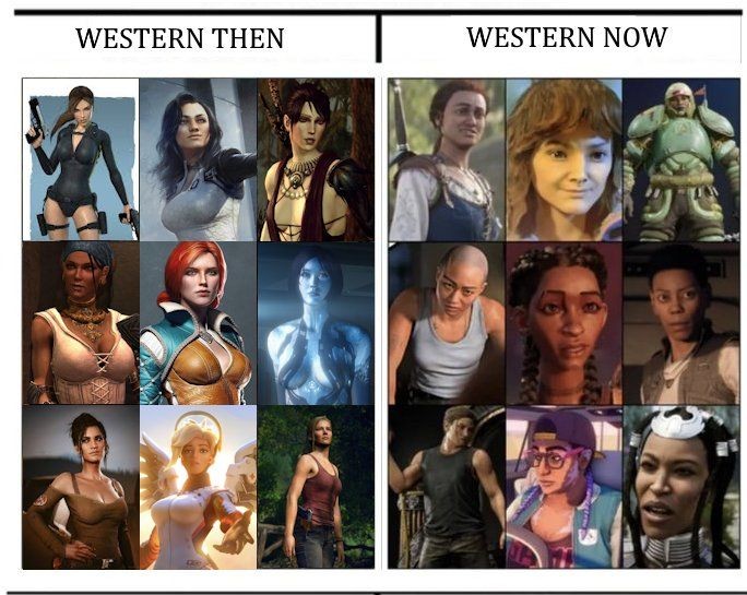 近日歐美游戲的女角色形象一直都不是很好,許多游戲都受到DEI荼毒,不僅長(zhǎng)得丑,而且還有些非常的抽象,這種現(xiàn)象在玩家圈引起了不少的爭(zhēng)議。不過在近日一個(gè)國(guó)外游戲博主Pirat_Nation分享截圖,他整理出將這些年各種東西方游戲的女性角色,并且對(duì)其進(jìn)行了對(duì)比,看的出來(lái),歐美審美下降了,但是東方游戲?qū)徝肋€是一直很在線的。