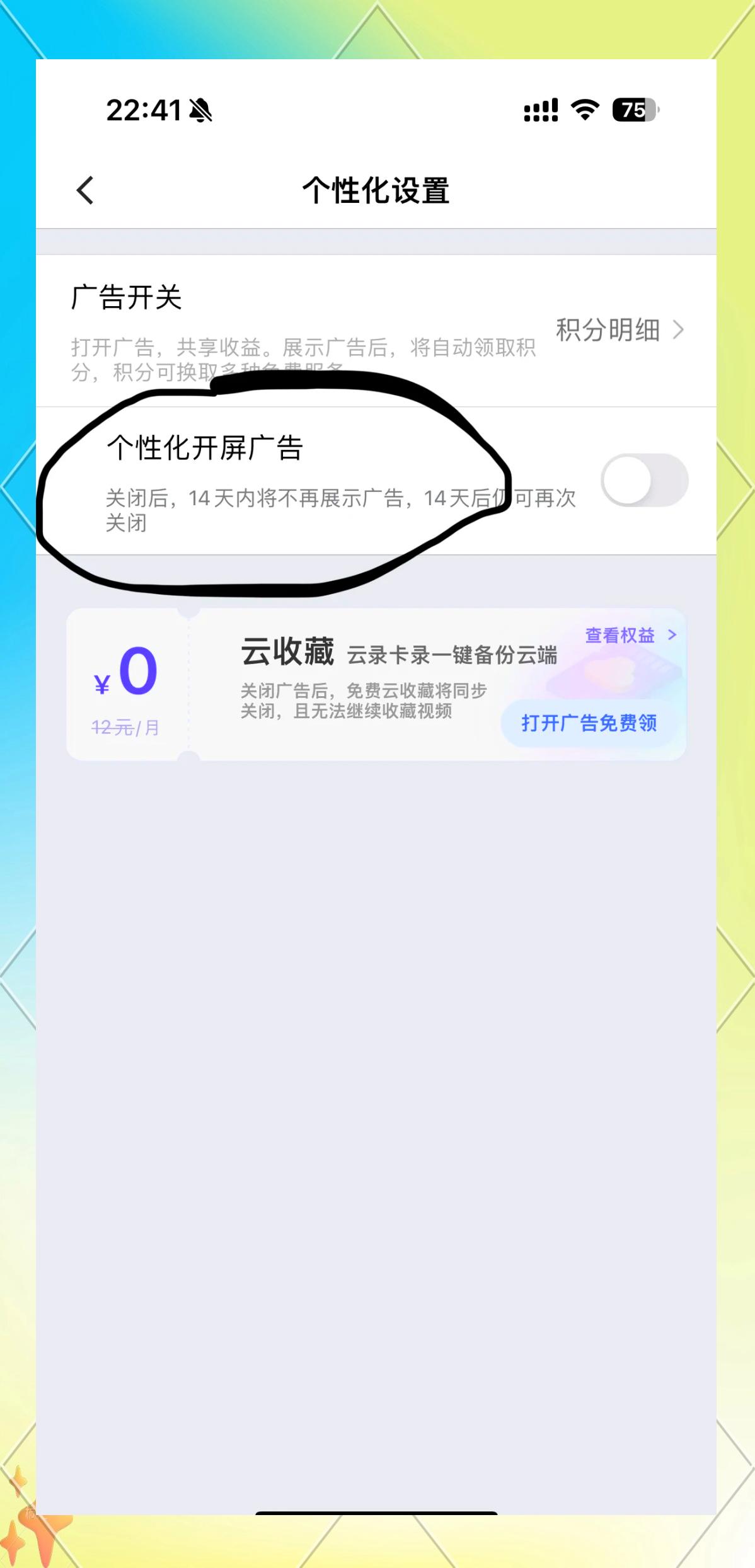 第三步:關(guān)閉廣告開(kāi)關(guān)