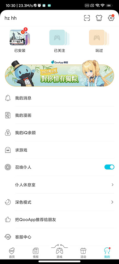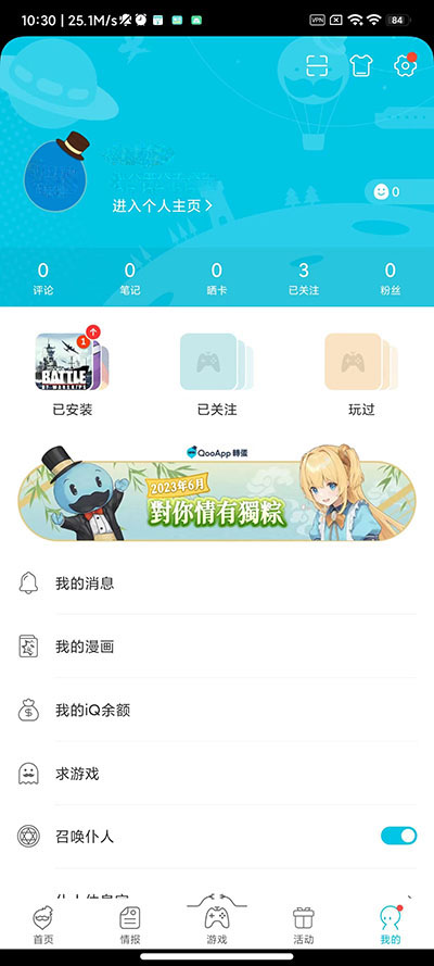 2、進入QooApp主界面,點擊“我的”;