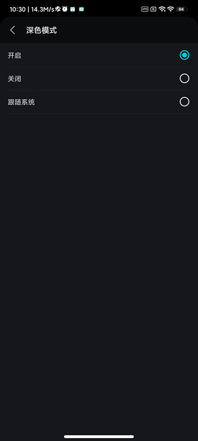 4、在深色模式界面中,點擊“開啟”即可;