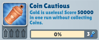 金幣無用!在一次運(yùn)行中得分50000且不收集金幣。