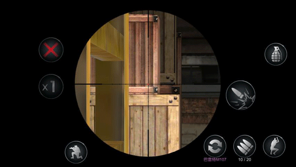 玩家在使用狙擊槍時(shí)大致操作位置相同,在點(diǎn)擊射擊按鈕后進(jìn)入開鏡模式,開鏡模式下右側(cè)會(huì)顯示開鏡的倍數(shù)和退出開鏡模式的按鈕。同時(shí)普通模式的按鈕全部保存,玩家可以隨心所欲的操作。