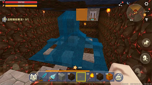 熔巖黑龍會(huì)向你噴射巖漿,巖漿遇水會(huì)變成黑曜石和石頭在你四周型成堡壘,用鉆石鎬鑿個(gè)孔就可以用遠(yuǎn)程武器還擊了。