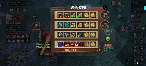 領(lǐng)取在線時長獎勵,獲取經(jīng)驗、金幣等資源,利用這些資源快速升級和強(qiáng)化。