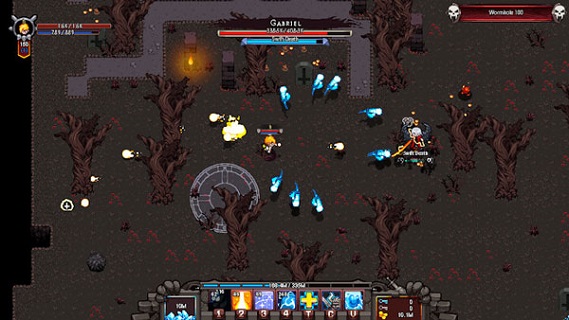 在城鎮(zhèn)中有一個(gè)藍(lán)色的橢圓,通過這個(gè)橢圓的魔法門我們可以選擇想要進(jìn)入的戰(zhàn)斗區(qū)域。接著就可以開始激動(dòng)人心的戰(zhàn)斗了。來到一個(gè)場景之后,每一個(gè)回合都有一定數(shù)量的怪物出現(xiàn)。我們需要控制角色不斷的在場景中擊敗怪物和破壞場景中的箱子來獲得獎(jiǎng)勵(lì),有時(shí)候我們會撿到裝備,有時(shí)候我們會撿到金幣。通過這樣不斷的戰(zhàn)斗獲得獎(jiǎng)勵(lì)讓自己的等級技能提升,獲得更好的裝備等等。