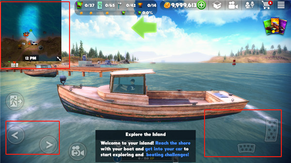 4、然后根據(jù)藍色方向標將船開至岸邊,然后上車;