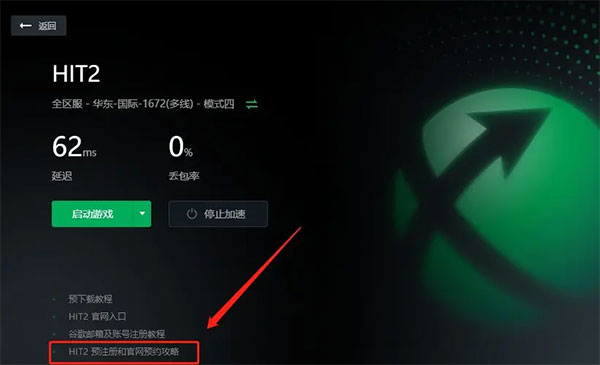 2、在加速界面點(diǎn)擊“hit2預(yù)注冊(cè)和官 網(wǎng)預(yù)約攻略”進(jìn)入教程。