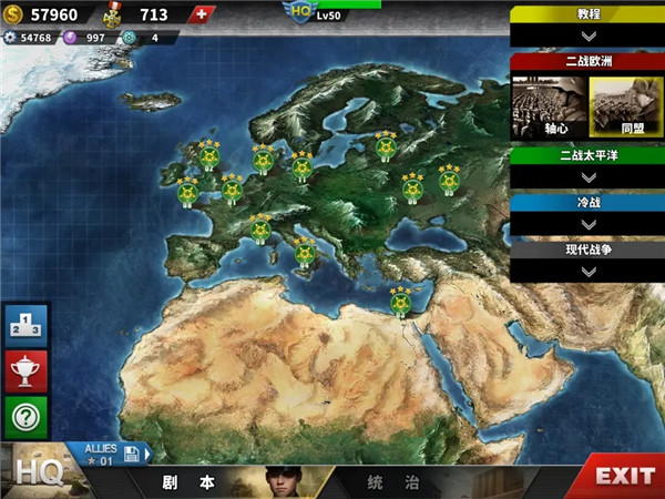 1、全球戰(zhàn)略地圖:無(wú)縫縮放查看世界戰(zhàn)場(chǎng)