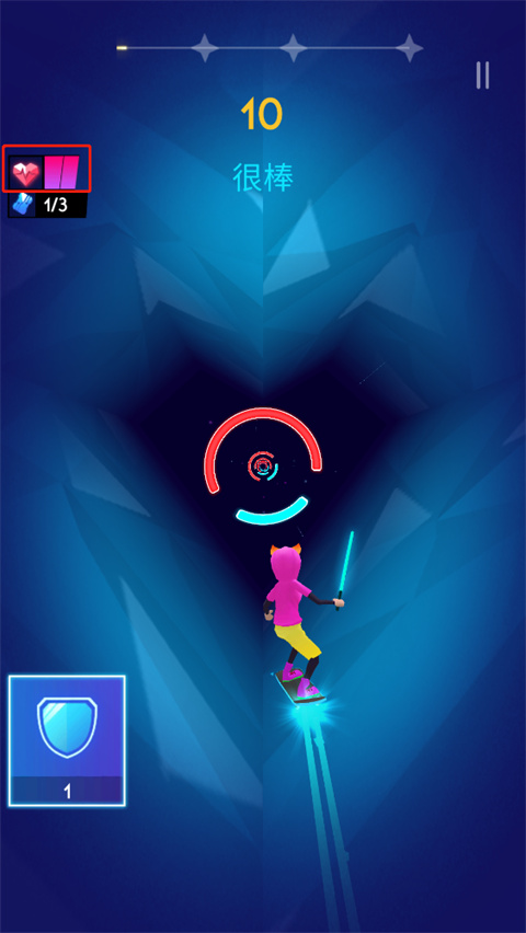 4、左上方的是血條,失誤一次會消耗一格血條,血條見底游戲就會結束;