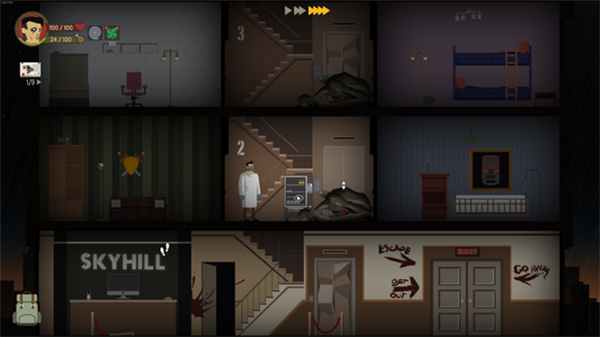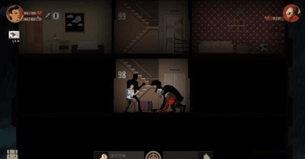 3、每層樓都有樓梯和兩個(gè)房間三塊區(qū)域,我們需要一一探索,找到資源和線索。