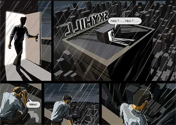 而相對應(yīng)的結(jié)局就是主角殺出重圍,打開了酒店的門,卻發(fā)現(xiàn)自己來到的“一樓”是樓頂……主角恍惚的呼喊著女兒的名字,自然無人應(yīng)答,而主角也在此時(shí)仿佛意識到了什么,企圖跳樓自殺
