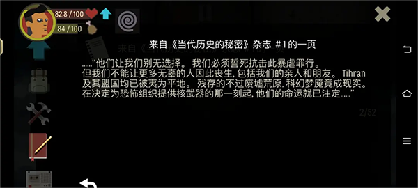 天空之山是一款很受歡迎的角色扮演生存類的手機(jī)游戲。是從端游上移植而來的,即便是在手機(jī)上也可以體驗(yàn)到游戲帶給你的魅力的。在游戲內(nèi)玩家將會扮演一位末日世界的幸存者的,需要你在這個(gè)充滿著變異喪尸的世界中生存的。游戲的背景是設(shè)定在了第三次大戰(zhàn),男主角僥幸活下來了,需要玩家不斷收集物資,然會活下來的。游戲還是有著超高的隨機(jī)性的,是可以為游戲增加更多的樂趣的。想?yún)⑴c就趕緊點(diǎn)擊它下載吧。