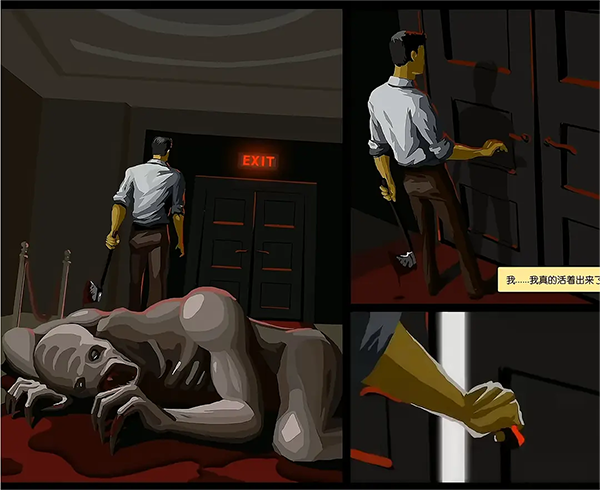 結(jié)局二:主角依舊是殺出重圍,但是這次打開門后就不是樓頂了