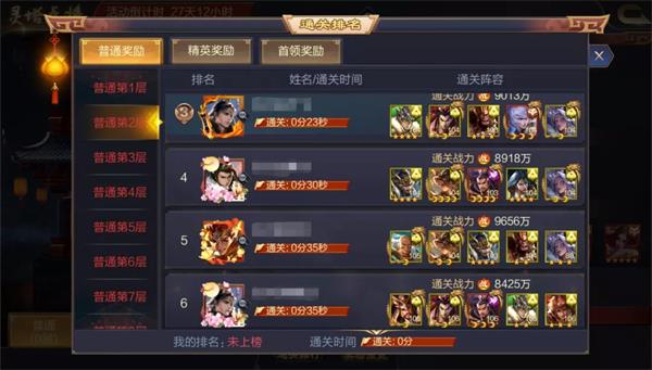 點(diǎn)擊「通關(guān)排行」可以查看到各個(gè)難度、各個(gè)關(guān)卡的玩家通關(guān)陣容。選擇適合自己的陣容借鑒也能夠更好地過關(guān)。