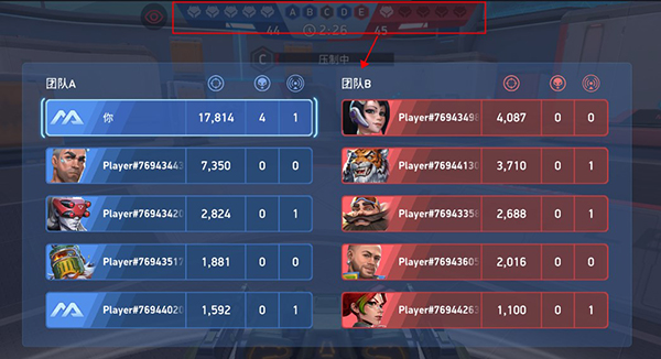 4、玩家點擊上方狀態(tài)欄即可查看己方和敵人玩家的戰(zhàn)績信息。