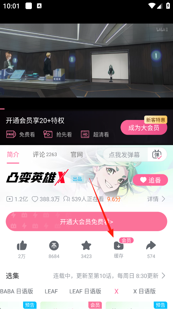 2、在動畫觀看界面中點擊下方緩存按鍵