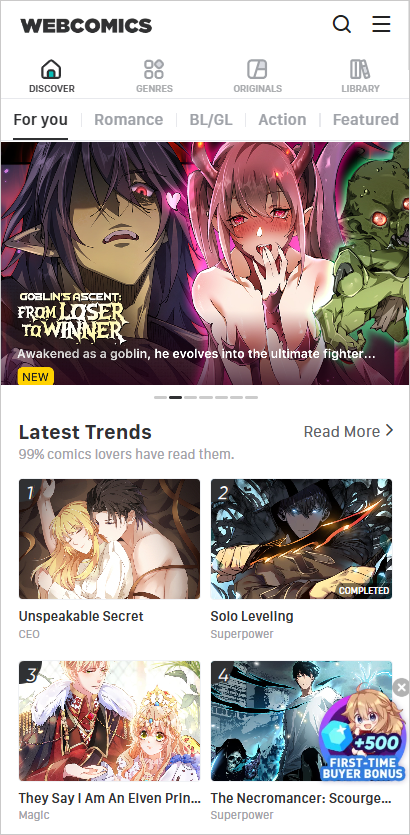 WebComics漫畫是一款很便利的漫畫閱讀軟件,這里的漫畫資源齊全,大家可以閱讀到各種類型的漫畫,校園、古風(fēng)、冒險、愛情等等,分類的非常的清晰,用戶很容易找到自己喜歡的漫畫資源,還可以自己搜索,可以直接找到喜歡的漫畫。軟件還提供了許多的福利,用戶可以免費閱讀到各種精彩的漫畫,還可以享受到各種優(yōu)惠折扣,舒適的閱讀漫畫哦。