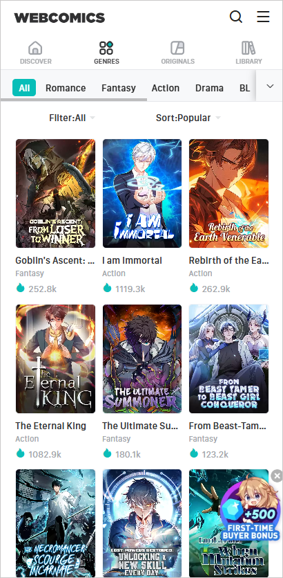 進行了清晰劃分,涵蓋熱血、戀愛、奇幻、校園、懸疑、搞笑、BL/GL等多個熱門類型。