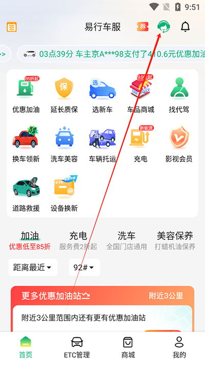 1、打開易行車服ETC軟件,點(diǎn)擊右上角客服;
