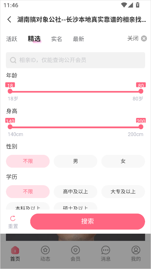 3、根據(jù)個人偏好,設(shè)置你心儀對象的條件,如年齡、學(xué)歷、身高等;
